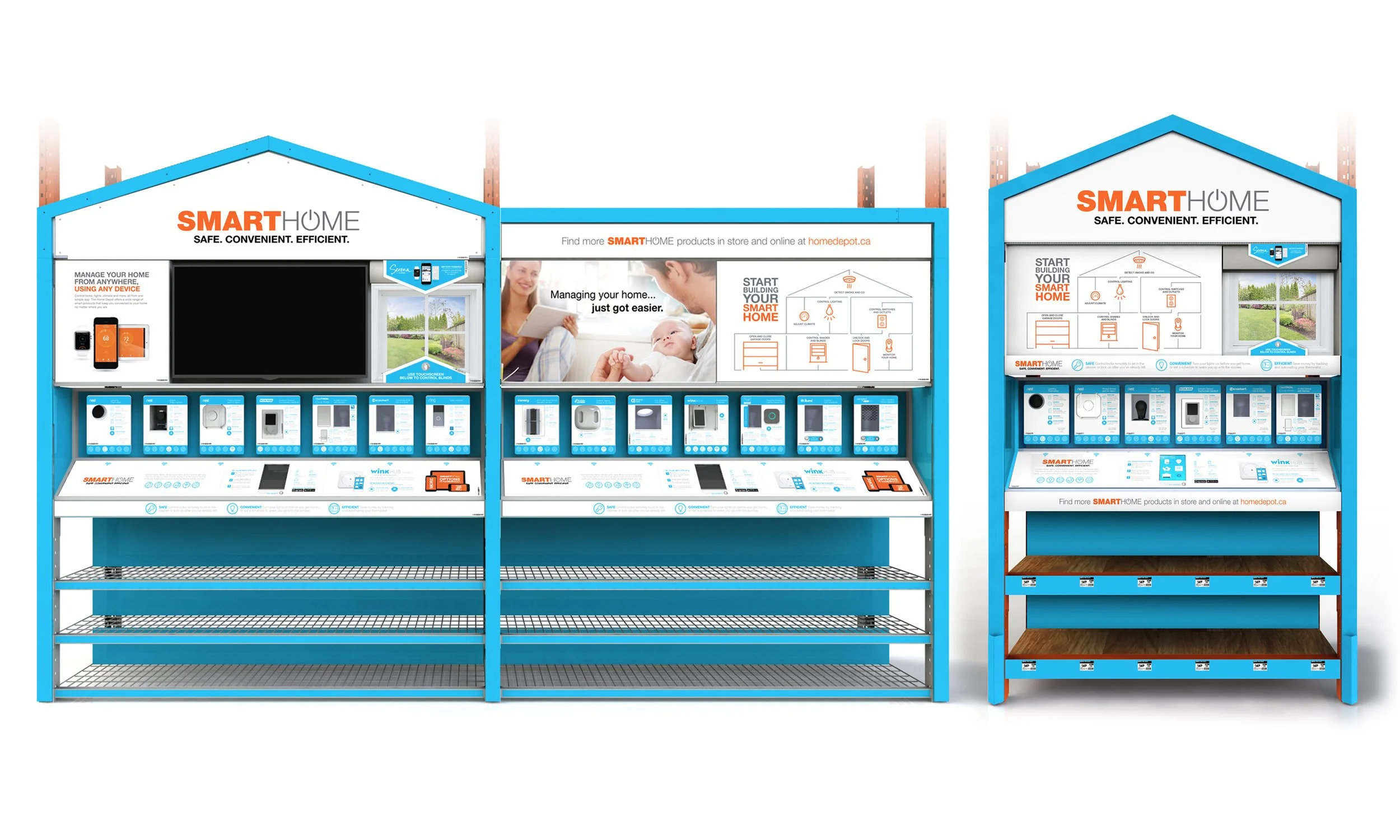 I developed easily digestible and approachable new category styleguide to convey the concept that you can effortlessly “simplify your life” by automating your home. THD was one of the first retailers to showcase these new products to mainstream consumers, so it was critical not to overwhelm or intimidate the shopper by focusing only on relatable everyday benefits (leaving complex tech specifics for packaging and online). Our scalable approach also meant Inline, Endcap, and Freestanding Table executions could be easily produced using common parts.
